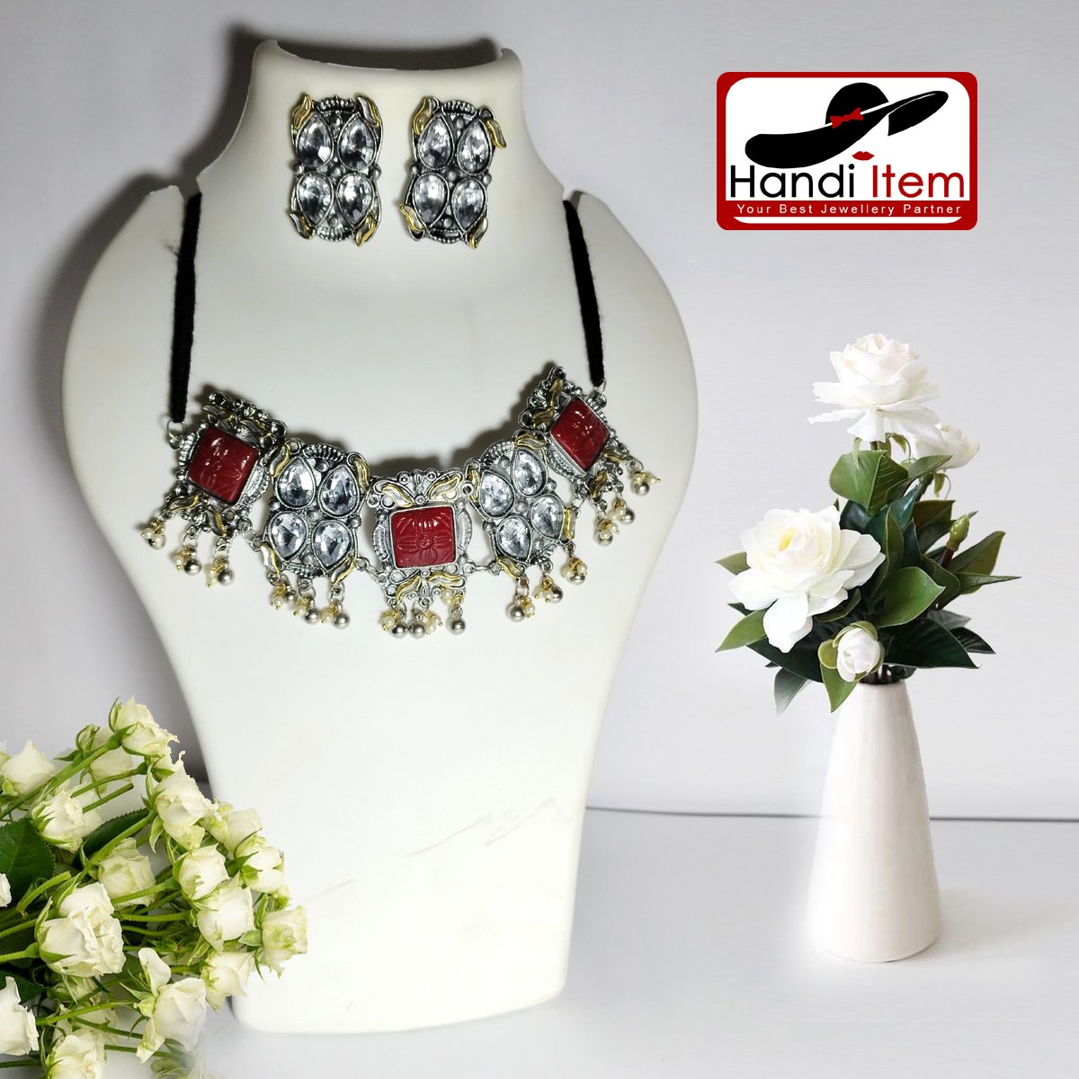 Red & Silver Long Neckless
