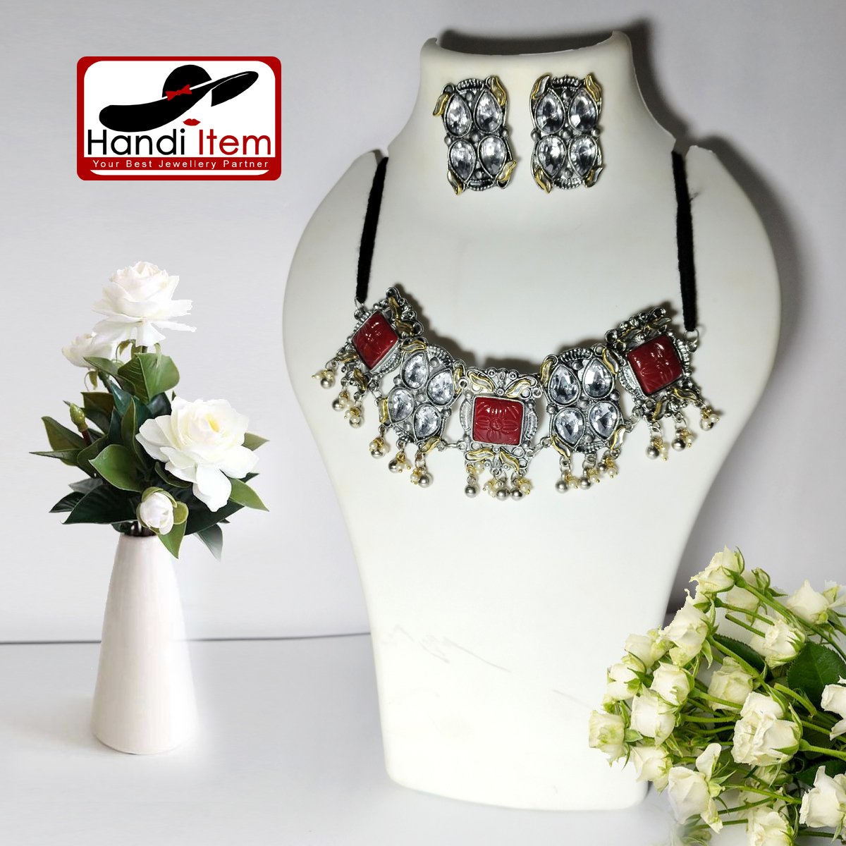 + Free ShippingRed & Silver Long Necklace